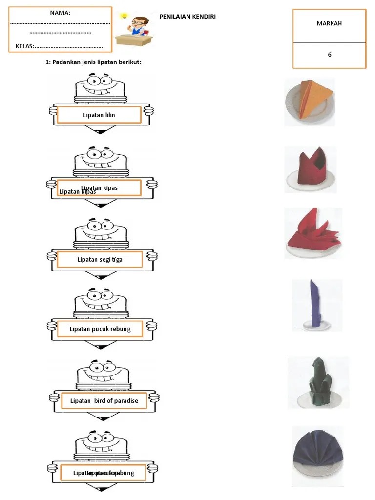 Namakan lipatan napkin di rajah. Menurut teknik melipatnya, jenis lipatan serbet dapat dikelompokkan menjadi 2 (dua) yaitu: Memastikan makanan tidak jatuh pada pakaian, 3. napkin terbahagi kepada 2 jenis iaitu kertas dan kain. jenis jenis lipatan napkin dan cara cara melipatnya posted :